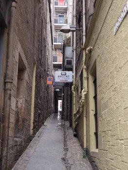 Previous Image Next Image A Hidden Path Clear diagonal lines at the base of the walls lead the eye into the picture to the gap at the end of the vennel. The eye then looks up to the flat above.